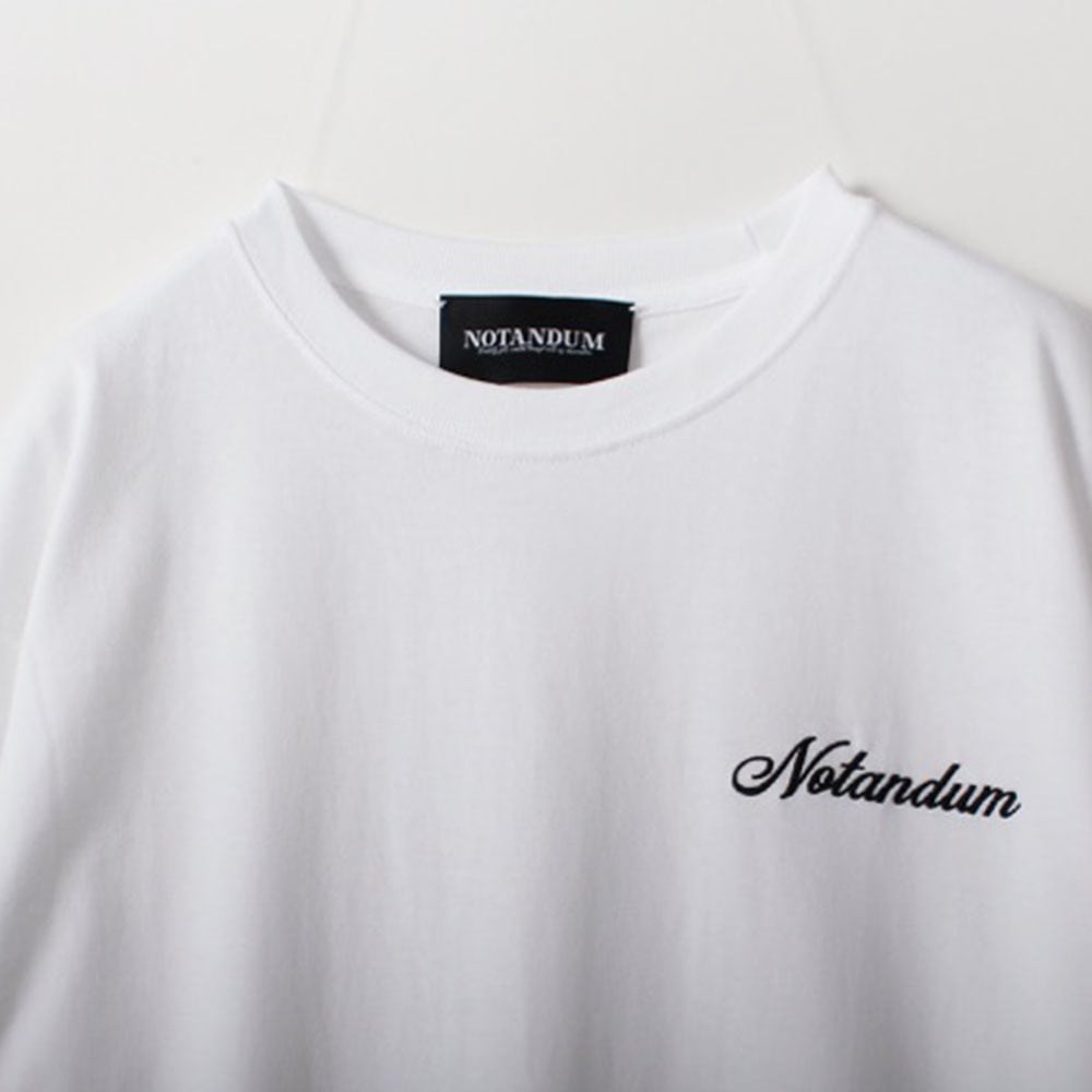 NOTANDUMのロゴを胸元に刺繍で施したブランドの定番アイテムとなるベーシックTシャツ。